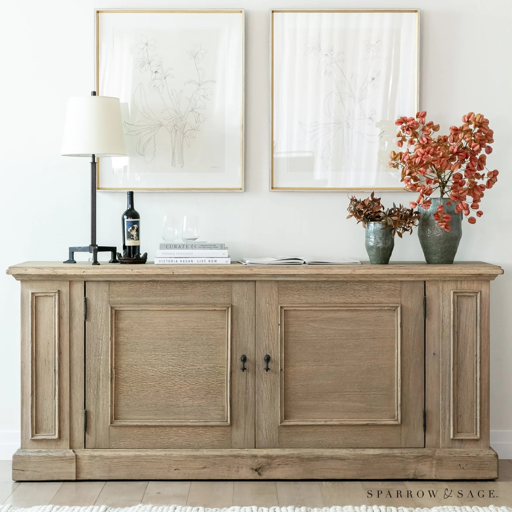 Rustic Elegance. This buffet was inspired by a piece I saw in a little restaurant in Italy. It had a big plate of ripe tomatoes sitting on it and a wood bowl of green olives. The door fronts are simple and the hardware special. In beautiful Monterey oak that is the staple of our Sparrow and Sage line. It is understated and generous in scale for great dish storage. We hope this piece inspires you to entertain over and over again!