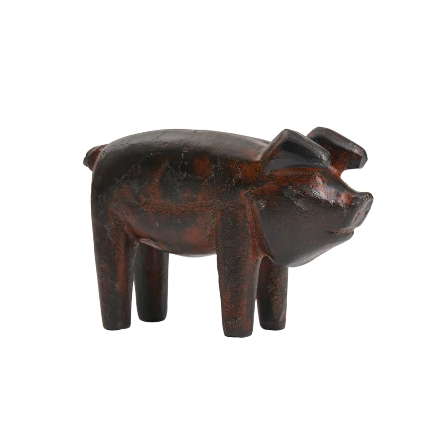 Oink-worthy charm. Cute wax‑cast iron pig in a natural finish (4 x 4 x 3). Perfect for a kitchen countertop, bookshelf, or whimsical tabletop accent.