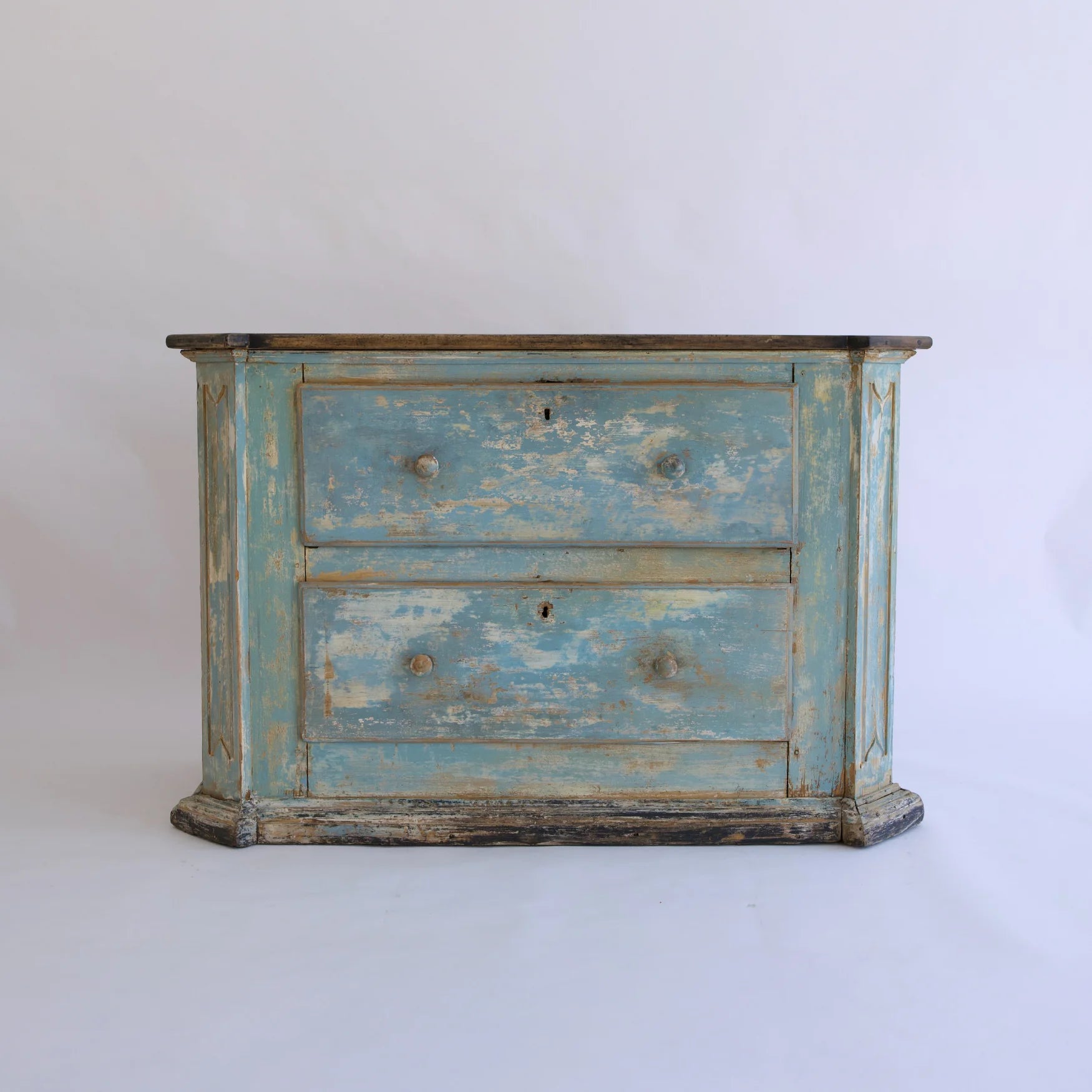 This 18th-century Italian walnut commode is distinguished by its softly worn blue finish and graceful proportions. Layers of original paint and natural patina highlight its age and authenticity, while hand-crafted details lend timeless elegance. A refined yet character-rich piece that brings European history and charm to any interior.